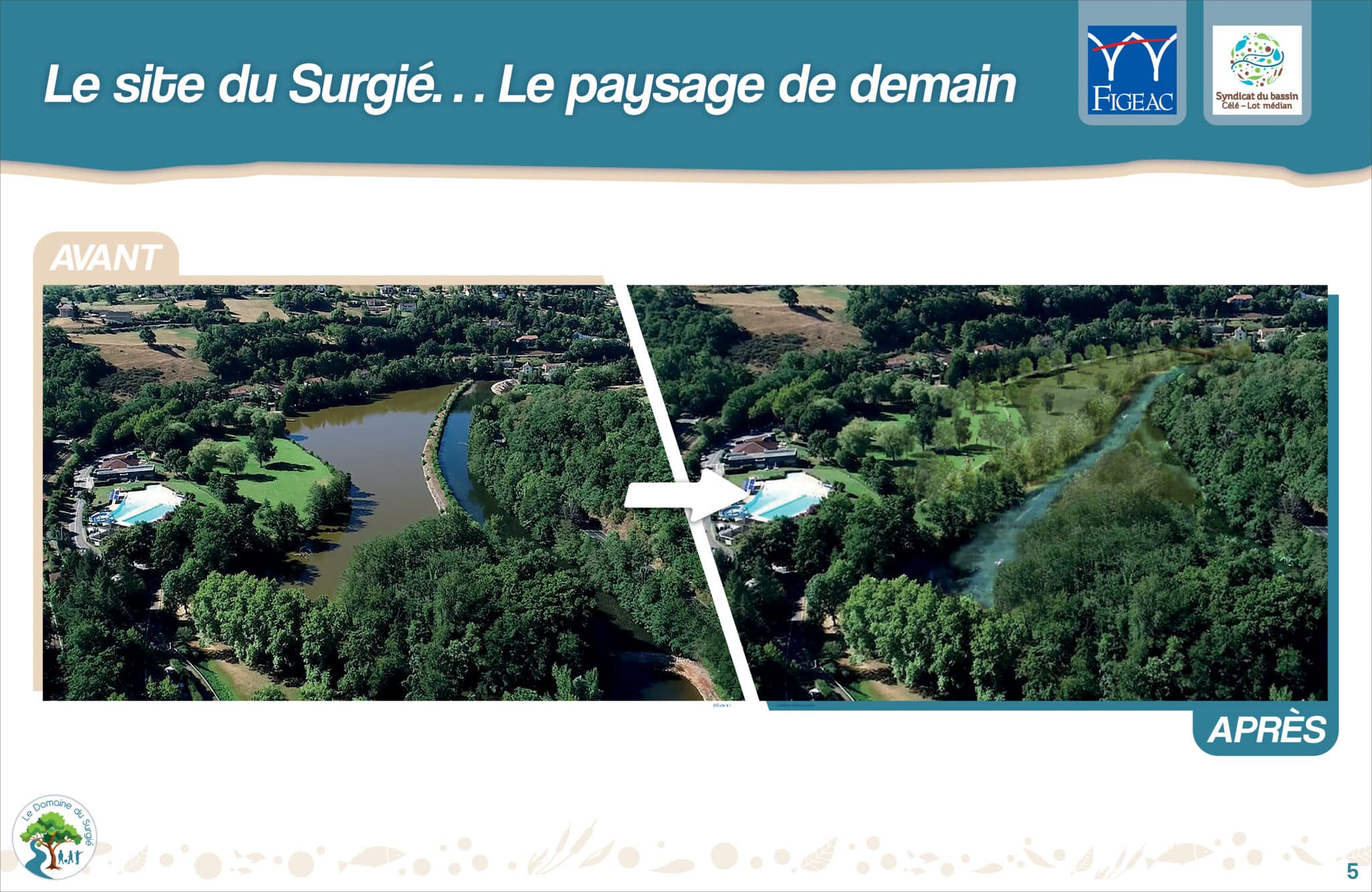 Dernier dispositif en date, la participation du public organisée du 20 mars au 11 avril 2025. Dans ce cadre, les documents les plus aboutis de présentation du projet de renaturation du Site du Surgié étaient mis à la disposition du public pour consultation sur les sites internet de la Ville et du Syndicat mixte Célé – Lot médian ainsi qu’en version papier dans les deux structures.