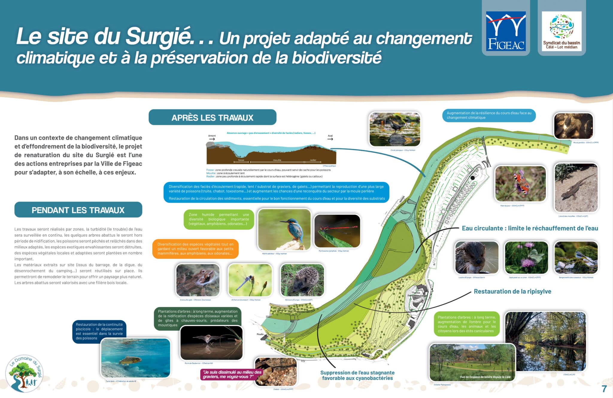 De plus, cette démarche redonnera une plus grande naturalité au site et, par conséquent, une meilleure accessibilité à la rivière pour les Figeacois. Enfin, cet aménagement constitue une manière d’anticiper les effets du changement climatique en redonnant un maximum de fonctionnalités naturelles au Célé.