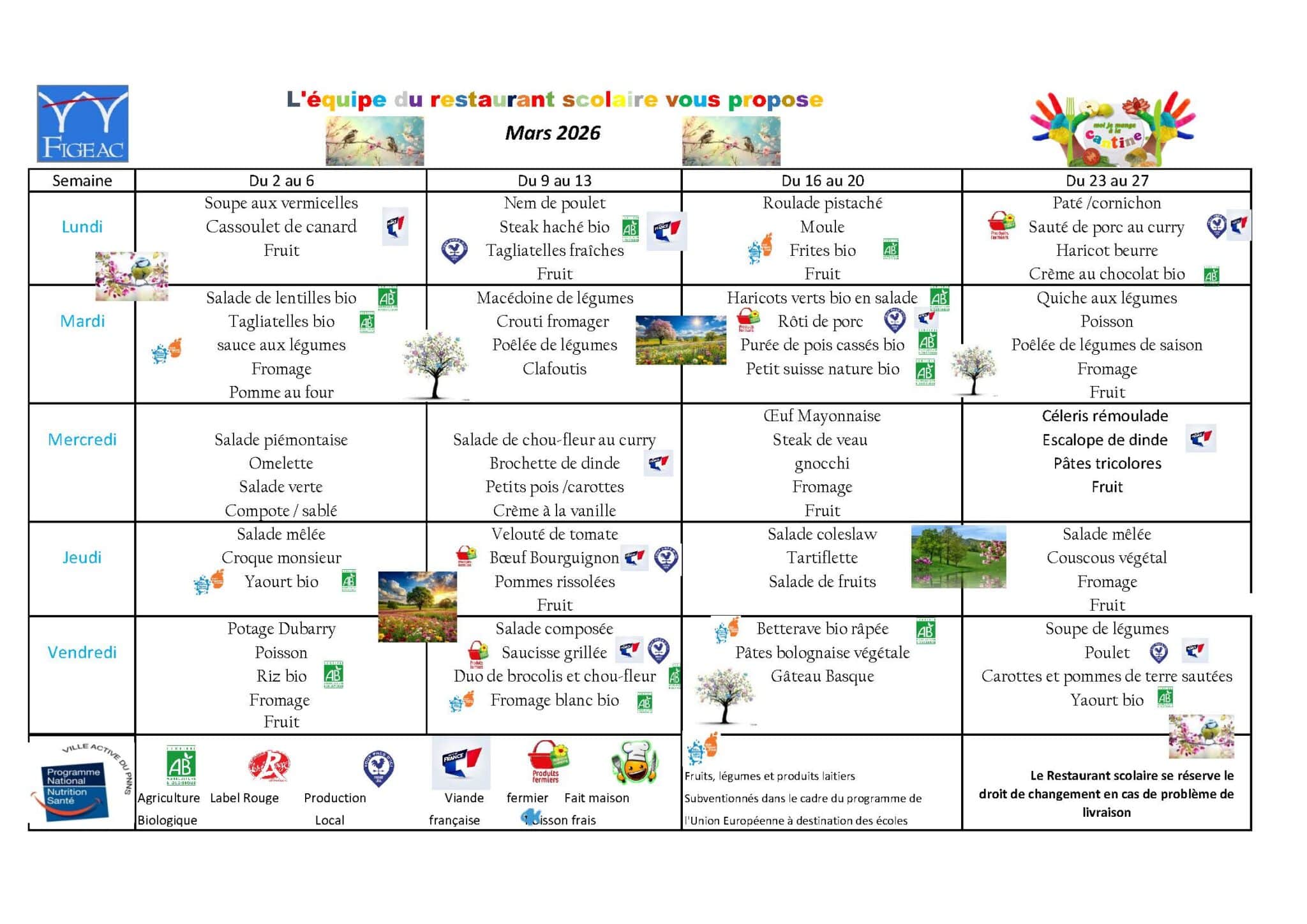 Le repas de midi est un moment important pour un enfant : un temps de pause et de convivialité indispensable au bon déroulement de sa journée scolaire. Depuis plusieurs années, la Ville de Figeac valorise une alimentation de qualité en proposant des repas sains, équilibrés et variés à des tarifs adaptés aux revenus des familles. Chaque jour, en cuisine, l’équipe du restaurant scolaire s’attache à conjuguer équilibre nutritionnel et plaisir, sans oublier l’éveil au goût.